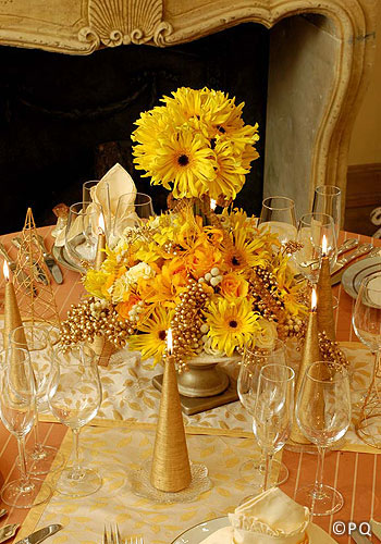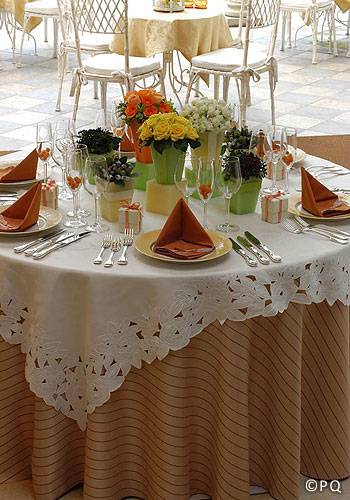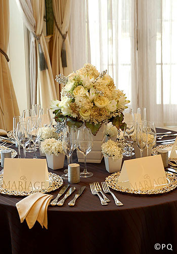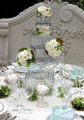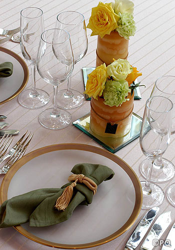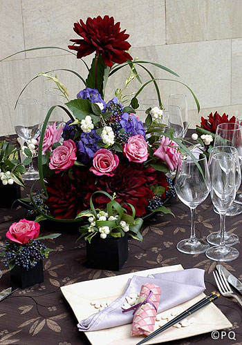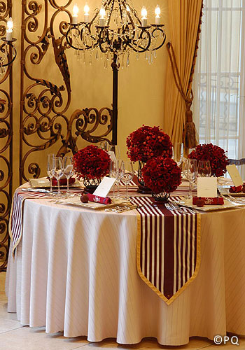テーブルコーディネートは、会場やクロスの色に合わせて、